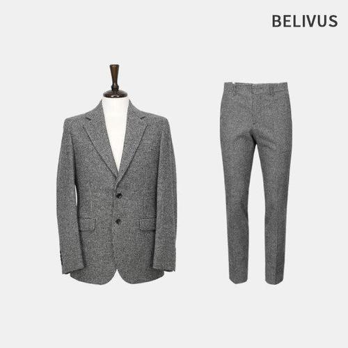 [빌리버스]빌리버스 남자 겨울 모던 하운드투스 싱글 자켓 정장 투피스 세트 BVOT170