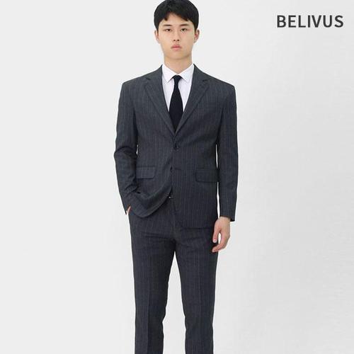 [빌리버스]빌리버스 남성 간절기 울블렌드 싱글자켓 정장 스트라이프 투피스 세트 BVOT163