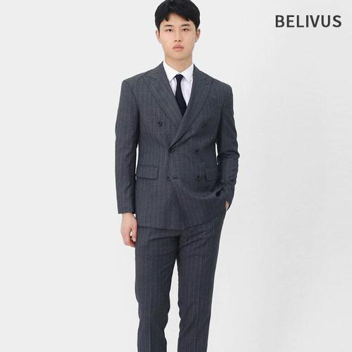 [빌리버스]남성 간절기 울블렌드 더블자켓 정장 스트라이프 투피스 세트 BVOT161
