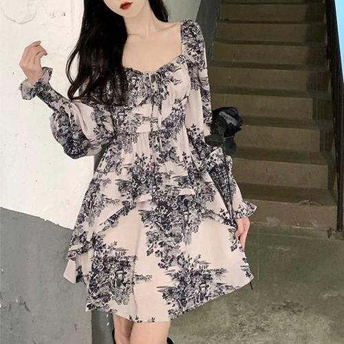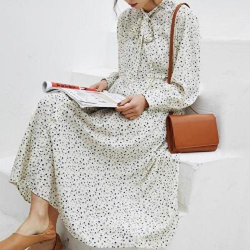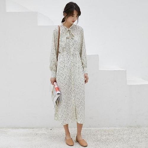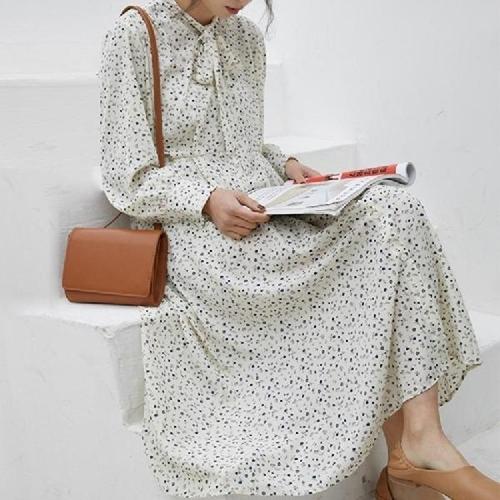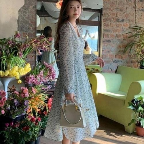 [엄지척]여성 봄원피스 꽃무늬 꽃잎 잔꽃 쉬폰 긴팔 롱 드레스_19913566_667501
