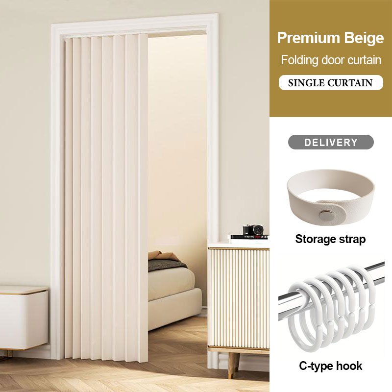 TEMU 1개 모던 접이식 도어 커튼 (플라스틱 후크 포함), 블랙/화이트/쌀무늬 디자인, 다양한 사이즈, 합성 섬유, 침실, 복도 및 거실에 적합, 고품질 파티션 스크린, 간편한 장식, 내구성 좋은 원단