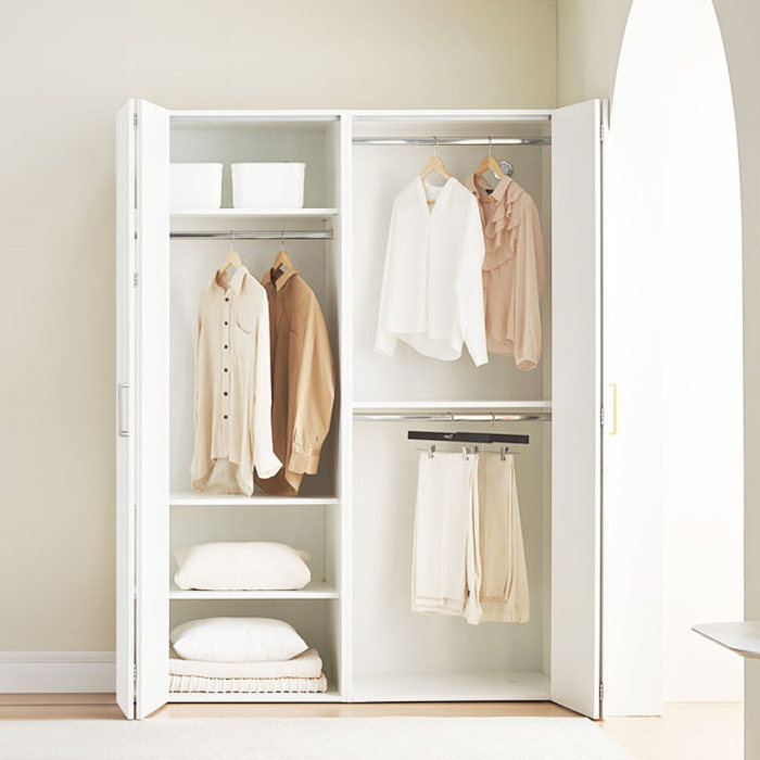 장인가구 [비밀특가] 노드 E0 폴딩도어 슬라이딩 옷장 B세트 1600 (행거형 이불장 800+2단 행거형 800)