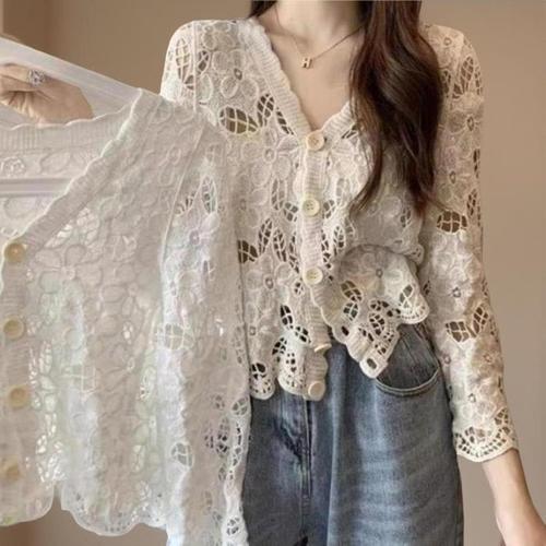 [다잇템_패션]여성 스웨터 크로셰 V넥 뜨개질 키치룩 가디건