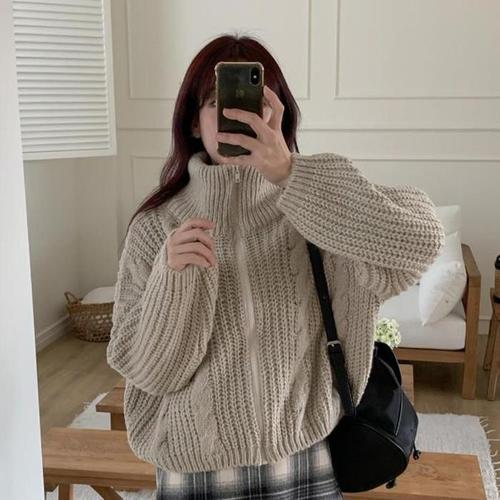[신상오픈런]꽈배기 뜨개질 하이넥 터틀넥 집업가디건 여성점퍼 (28812257)