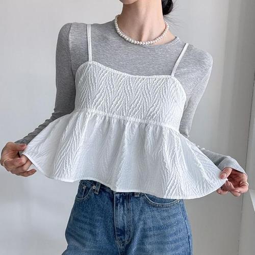 [신상오픈런]엠파이어 크롭뷔스티에 휴양룩 프릴끈나시 자가드 (30845402)