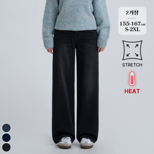 포레스트핏 / (겨울찐스판2탄) 발열원단 기모 밴딩 와이드 데님 팬츠 3기장/3컬러