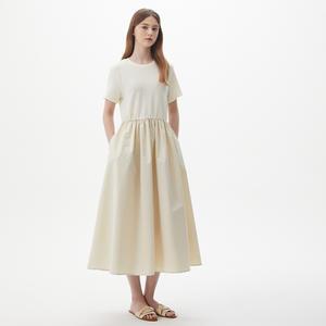 [에고이스트] (ER4WO060) 우븐 져지 믹스 셔링 볼륨 원피스