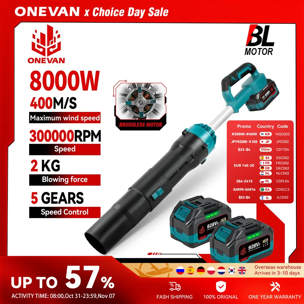 ONEVAN 송풍기 브러시리스 2000W, 200 M/S 제트 터보 송풍기,전기 터보 송풍기 제트 선풍기, 격렬한 자동차 건조기, 마키타 18V 배터리용 휴대용 먼지 블로잉 도구,