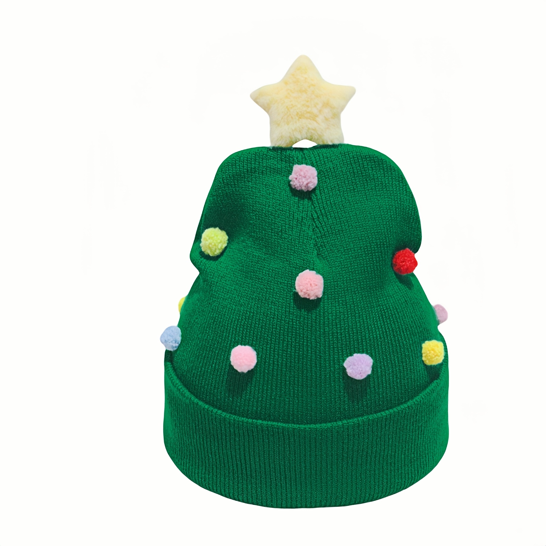 TEMU 귀여운 폼폼이 달린 크리스마스 트리 모양의 멀티컬러 크리스마스 모자 한 세트. 가을, 겨울철 따뜻함을 위한 완벽한 상품으로, 축제 파티 및 가족 모임에 적합합니다.