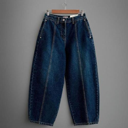 [신상오픈런]여성 겨울 기모 절개 디자인 벌룬 와이드핏 속기모 청바지 (42636628)