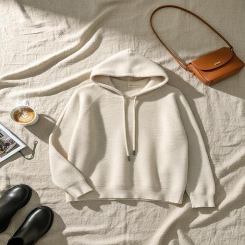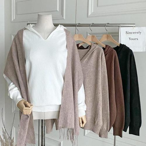 [신상오픈런]여성용 오버사이즈 스트링 후드 긴팔 니트 절개 디자인 (42613322)