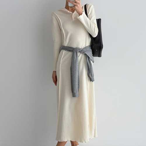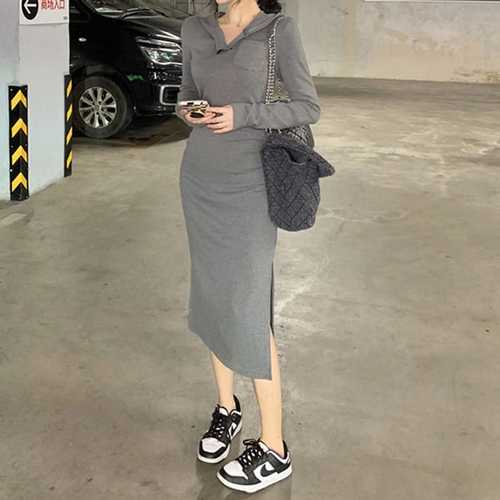 슈팅스타 / 슬림 캐주얼 옆 절개 후드 원피스2179