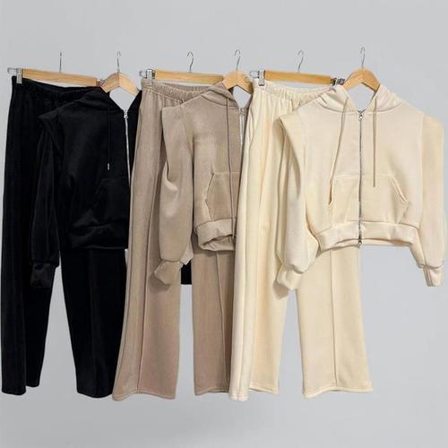 [신상오픈런]여성용 크롭 후드 집업과 절개 골지 팬츠 세트 (44091729)