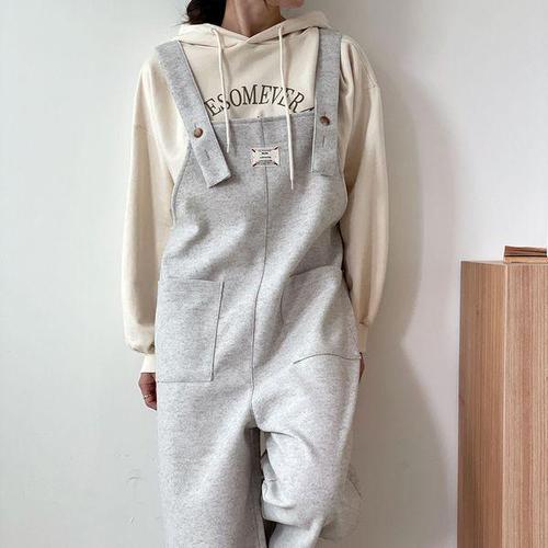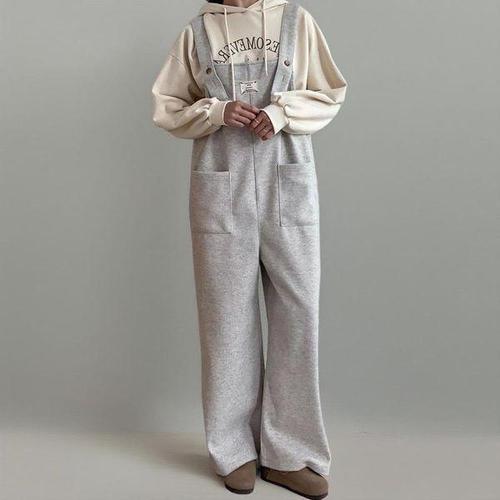 [신상오픈런]여성 라벨 두 포켓 멜빵 일자 와이드핏 가을 점프수트
