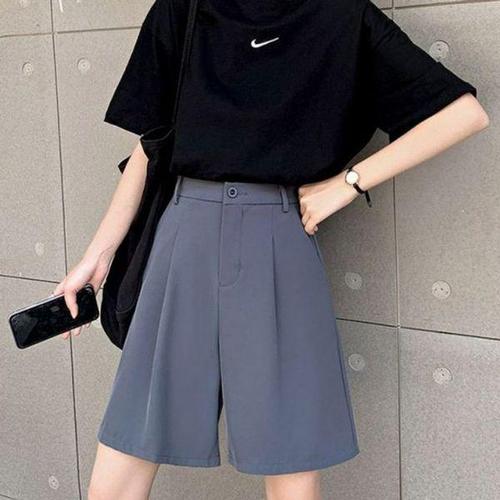 [에이치플러스몰]여성 여름 하이웨스트 와이드핏 정장반바지 일자핏 숏