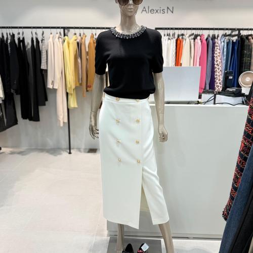 [알렉시스 앤 제시뉴욕]골드 버튼 정장 절개 롱 스커트 DE1-NSSQ0722_DG
