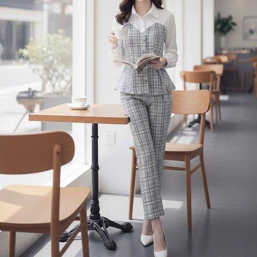 [핑크엘리제]체크투피스 슬랙스셋업 정장 에트와르투피스
