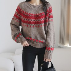 제니트 여성 부들부들 노르딕 패턴 포인트룩 루즈핏 라운드넥 긴팔 하프 니트