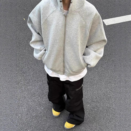 제로투올샵2 / 남성용 그레이 코튼 클린핏 숏 후드 집업 그레이 m