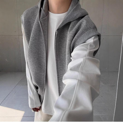 제로투올샵2 / 남녀공용 클린핏 후드 조끼 패션 아우터 그레이 m