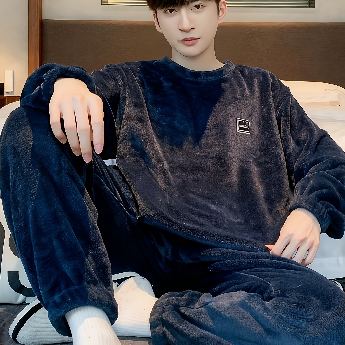 TEMU 남성용 코랄 파자마 가을 겨울 두꺼운 플란넬 따뜻한 청년 홈웨어 가벼운 세트|남자옷|남자바지