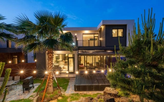 전용 수영장과 주방, 세탁기와 건조기까지 갖춘 숙소. 제주펜션!