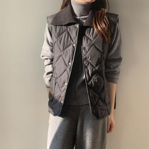 [문에이블]문에이블 여자 여성 가을 겨울 루즈핏 따뜻한 경량 아우터 퀄팅 니트카라 패딩 조끼 베스트