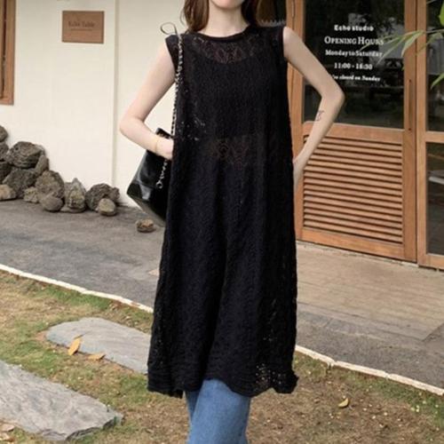레이스 민소매 원피스 겸용 레이어드 트임 롱조끼
