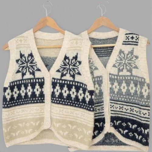 [신상오픈런]여성 브이넥 눈꽃 패턴 가을 노르딕 니트 조끼 (41935651)