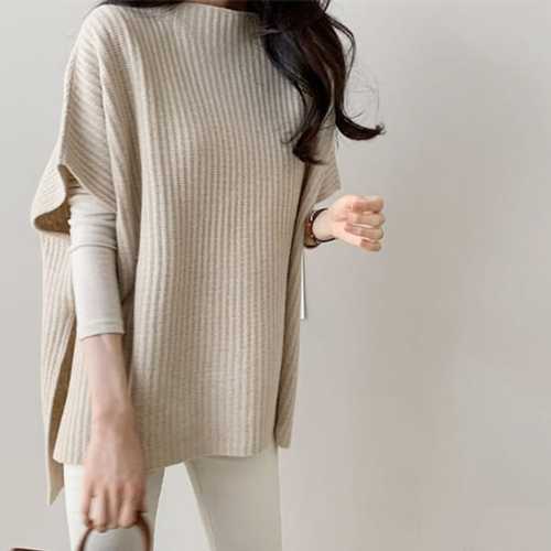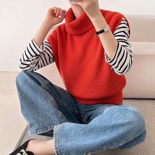 [신상오픈런]여성 골지 캡소매 터틀넥 니트 조끼 가을 겨울용 박시핏 (40818164)