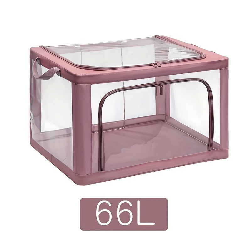 TEMU 전면 투명 접이식 보관함 - 패브릭 & 메탈 프레임, 로즈/그린/그레이, 옷장/침실용, 침대 밑 수납, 2가지 사이즈(50x40x33cm/40x30x20cm)