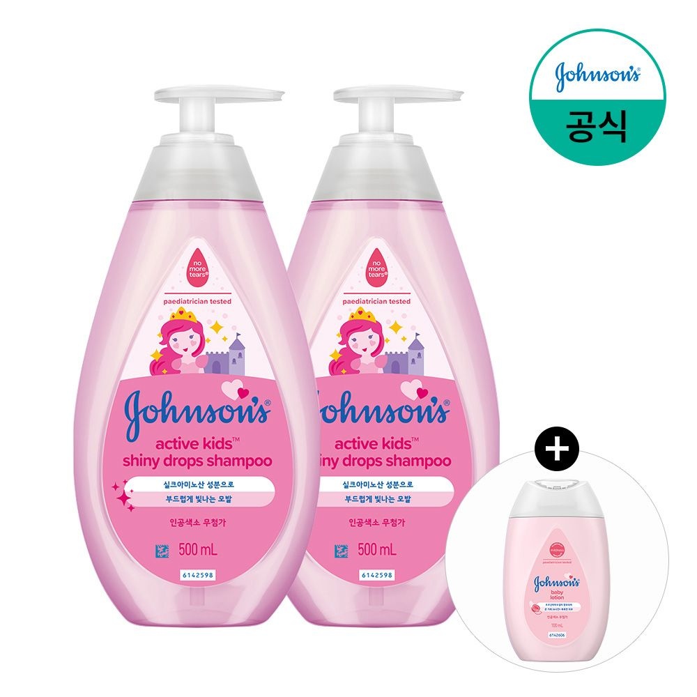 존슨즈 키즈 액티브 샤이니 샴푸, 500ml, 3개 + 증정(핑크로션, 100ml, 1개)
