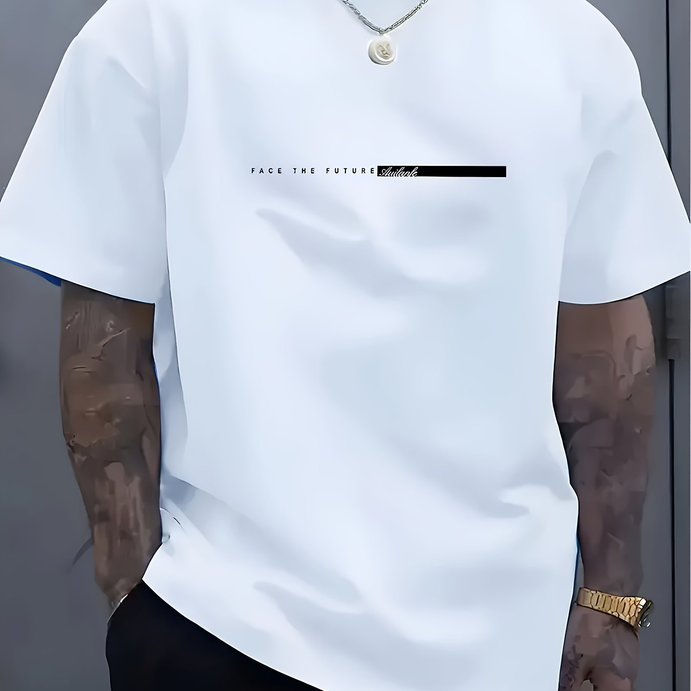 TEMU 남성용 캐주얼 반팔 티셔츠 "세상을 잡아라" 가슴 프린트 - 통기성 좋은 여름 원단, 라운드 넥 디자인, 일상 및 야외 활동에 적합한 레귤러 핏, 세탁기 사용 가능