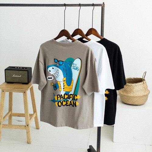 제이엘핏 / 남녀공용 오버핏 라운드 프린팅 죠스 반팔티