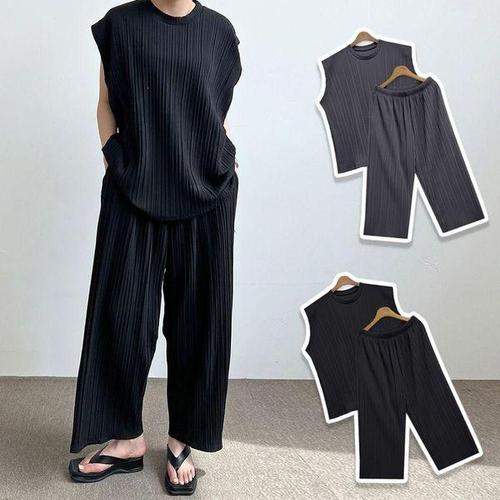 [에이치플러스몰]주름 바지 세트 패션 전체 라운드넥 나시 여성 여름