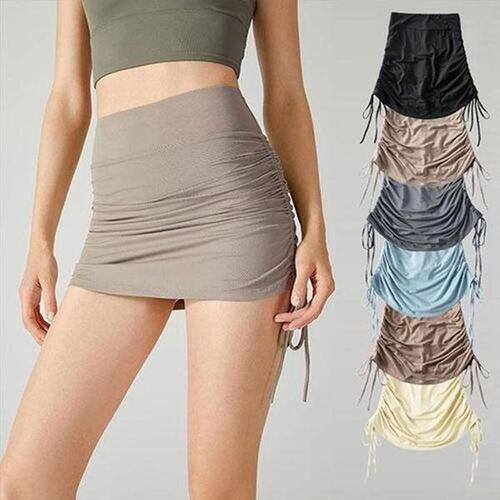 새로운 패션 여성의 높은 허리 주름 솔리드 컬러 절반 길이 탄성 스커트 프로모션 레이디 블랙 핑크
