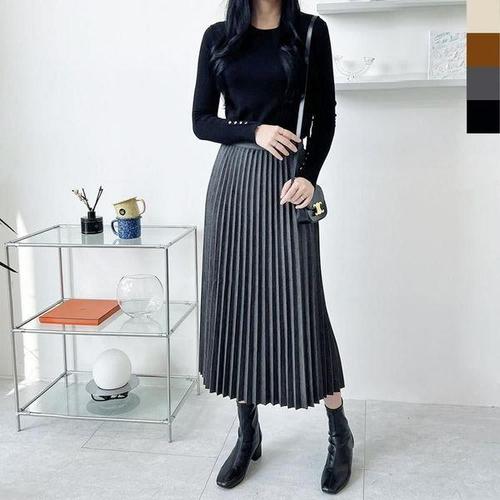 벨벳 주름 플리츠 롱 스커트 겨울 간절기 치마