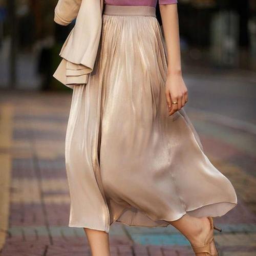 네모엔룩 여성용 핫픽스플리츠 허리밴딩 라인스톤 반짝이 주름 A라인 플리츠 롱 스커트 NL