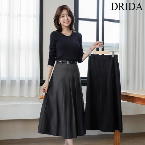 봄 가을 클래식 플리츠 미디 롱 주름 벨트 셋트 치마 스커트 캐주얼 모임 출근
