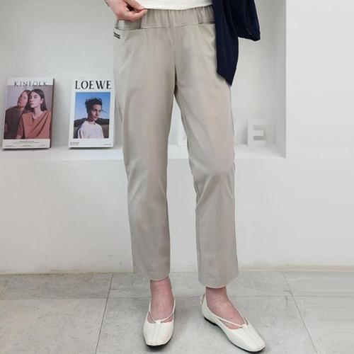 1+1 중년 여성 캐주얼 팬츠 봄 가을 하이웨이스트 슬랙스 바지 빅사이즈 스판 밴딩 일자 바지 WXY