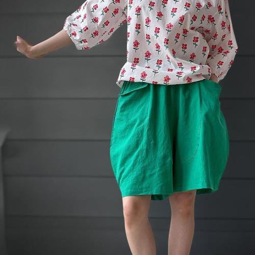[에이치에스라이프]반바지 숏팬츠 쇼츠 빅 포켓 와이드 면 여성 여자 중년 5부 여름