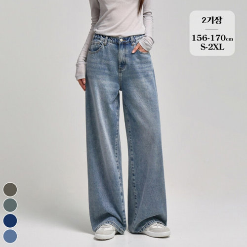포레스트핏 / 뒷밴딩 워싱 와이드 데님 청바지 (J100501)