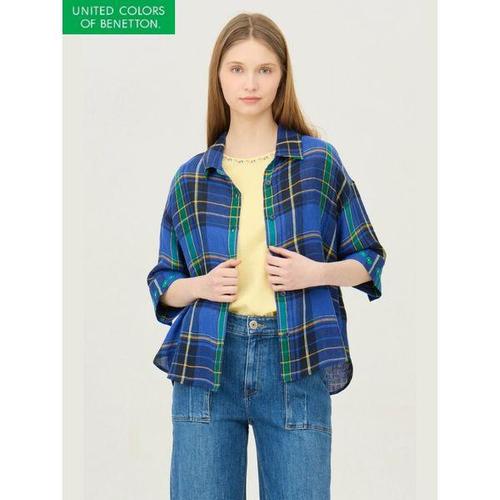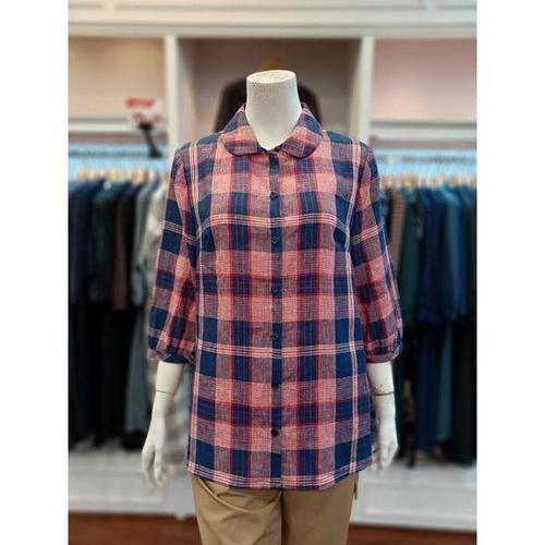 [베네통]자수 커프스 린넨 체크 블라우스_BABL51531