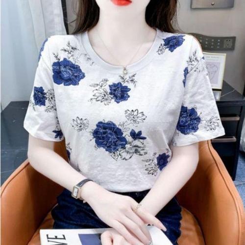 [셀러허브_여성트랜드패션]ONM 블루장미 지도 입체 패턴 반팔 티셔츠 URD-531