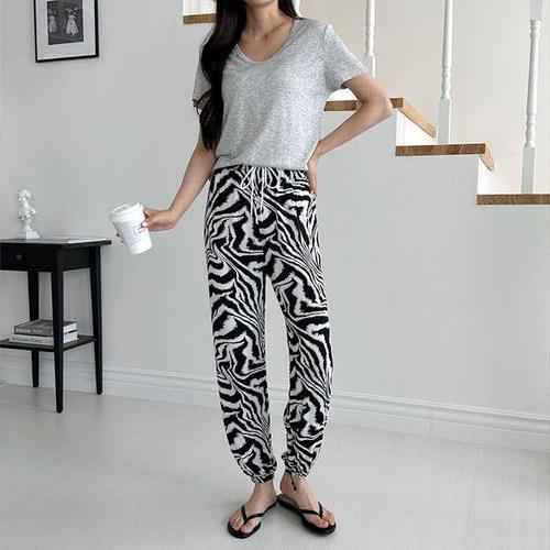 [셀러허브_여성트랜드패션]ONM 밴딩 바지 여성 지브라 편한 여름 쿨 조거 패턴 팬츠
