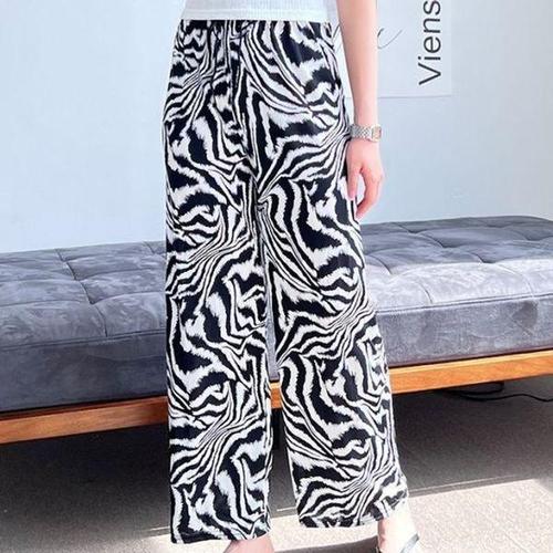 besteffie 남성 여름 넓은 핏 바지 얇은 소재 지브라 프린트 스트리트 패션 바지 K57