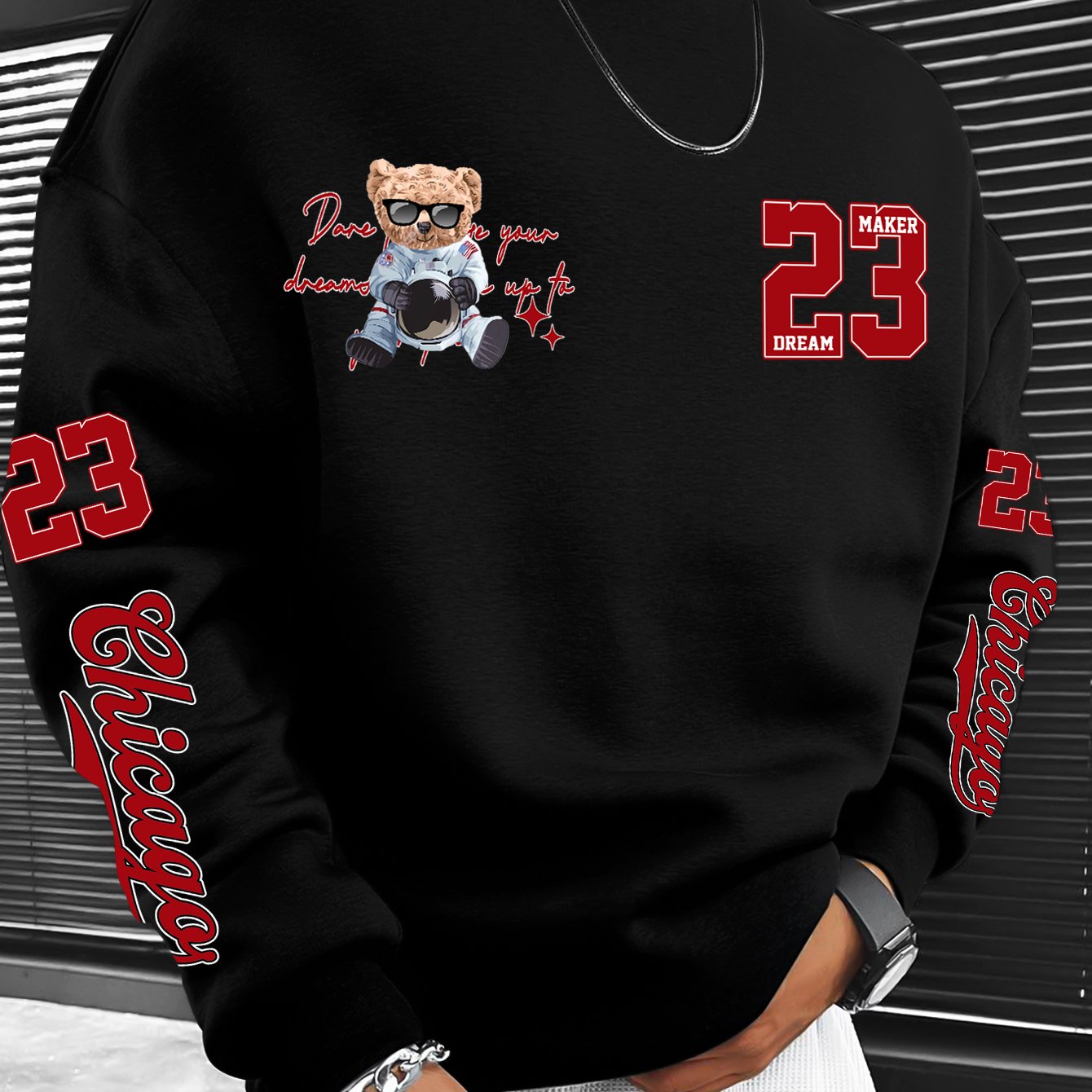 TEMU 트렌디하고 멋진 미국 스트리트 스타일 시카고 베어 브랜드 라운드넥 스웨트셔츠 - 패셔너블한 상의! 남성 스트리트 스타일 의상, 캐주얼 웨어에 완벽 / 트렌디한 외출을 위한 선택