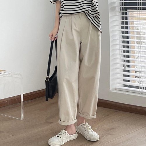 남자 바지 캐주얼 배기핏 심플 링클프리 가벼운 단색 봄여름 스판 이지케어 원픽1