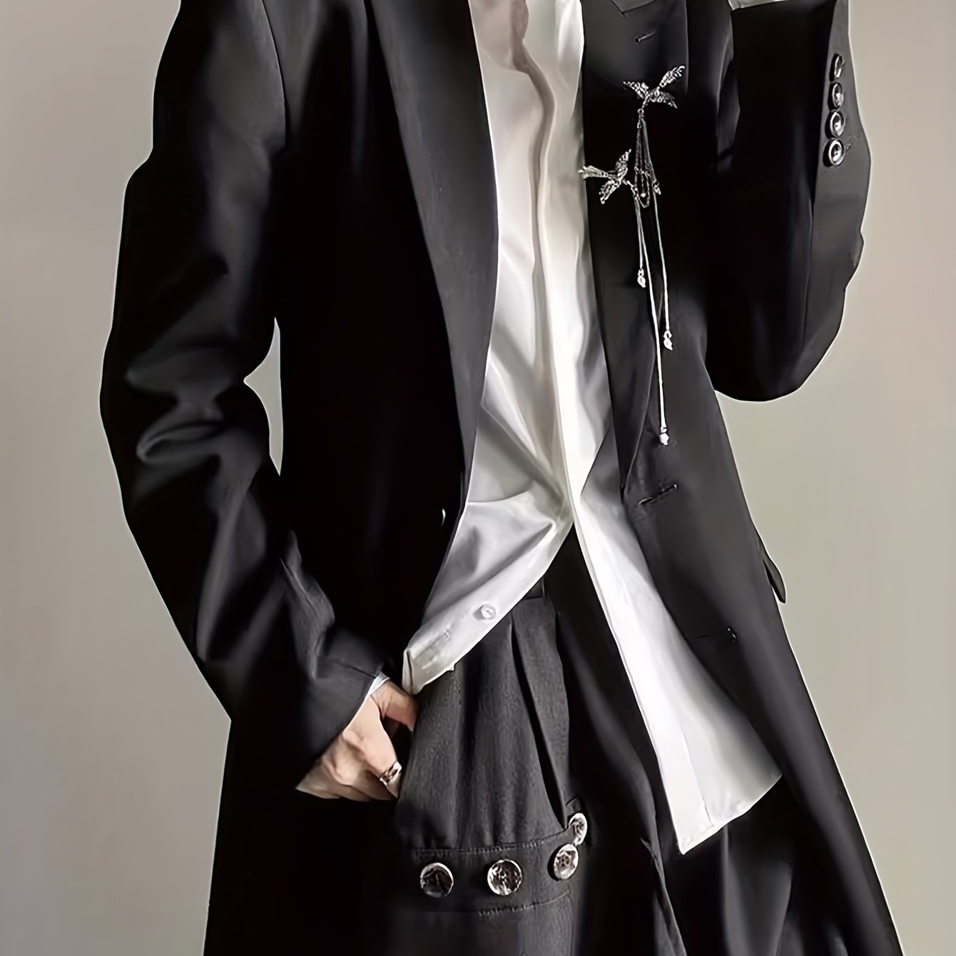 TEMU 남성 솔리드 블랙 롱 코트, 슬림핏의 다용도 정장 재킷, 통근에 적합