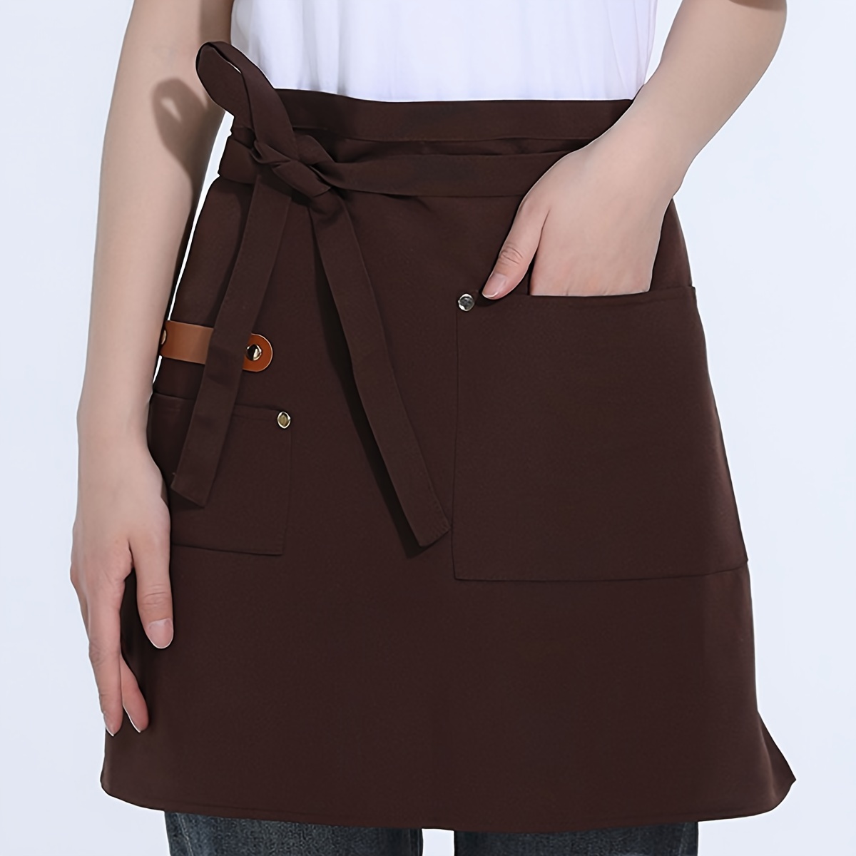 TEMU 1개 주방 캔버스 앞치마, 여성용 레스토랑 웨이트리스 앞치마, 확장 허리밴드 강화 솔기, 하프 앞치마